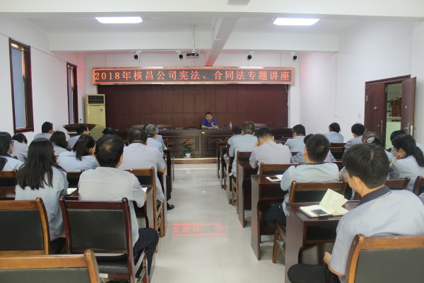 2018年6月29日,核昌公司在公司大會議室舉行憲法、合同法專題講座,公司中層以上干部、各部門采購人員、綜合干事等40余人參加了培訓(xùn)。本次專題講座是核昌公司推進“七五”普法工作全...