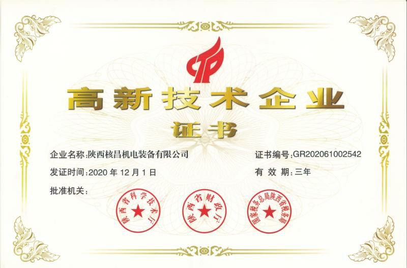 近日,根據國家《高新技術企業認定管理辦法》和《高新技術企業認定管理工作指引》的相關規定,通過對企業知識產權、科技成果轉化能力、企業經營成長性指標等項目的嚴格評審,陜西核昌...