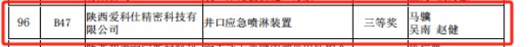 日前,陜西省科協(xié)公布2024年陜西省創(chuàng)新方法大賽評審結(jié)果,陜西愛科仕精密科技有限公司的“井口應(yīng)急噴淋裝置”項目在此次大賽中榮獲三等獎。