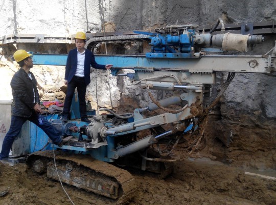 4月7日上午,公司總經理王超宏在總經理助理、綜合部部長劉彥仁的陪同下,親臨北京某房建施工現場,看望現場負責新產品HMD-7500全液壓錨固鉆機工業性試驗的同志,并對鉆機的試驗情況進行了調研。