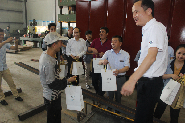 田主席一行人首先來到生產車間,看望炎熱天氣下仍辛勤工作的一線工人,囑咐他們在工作的同時一定要注意防暑降溫和安全生產,并代表集團公司為員工們送上防暑降溫物品。員工們收到來自集團公司的關懷后,紛紛表示一定克服酷暑高溫,堅守崗位,盡職盡責,積極投身于生產工作中,完成公司下達的各項經營任務。