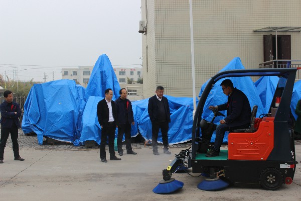 首先,作為環衛保潔方面的專家,郭董事長觀摩了二一〇研究所研發的新能源電動清掃車的制造車間及道路清掃作業演示,了解了新能源清掃車的結構及工作原理,親自試駕清掃車進行清掃作業。郭董事長認為,二一〇研究所的新能源電動清掃車是成熟、能夠適應現代城市環境保潔作業之需要的新能源環保設備。