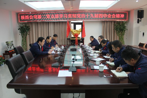 2019年12月20日,核昌公司各黨支部分別組織開展黨的十九屆四中全會精神宣講,會議由各黨支部書記主持,公司領導班子成員分別在各黨支部開展宣講。