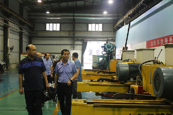 首先,闕足雙隊長一行在公司領導班子的陪同下,參觀了公司各生產車間,實地了解了新研發的智能拖車鉆機組等產品。隨后,雙方在二樓會議室進行交流座談。