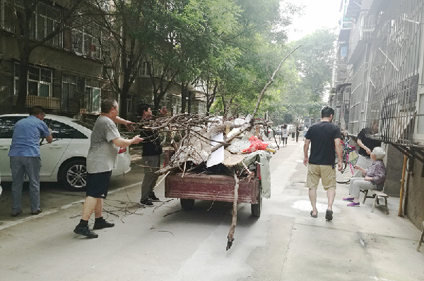 物業全體工作人員明確任務、分工合作,充分發揚不怕臟、不怕累的精神,拿起掃把、鏟子對小區衛生死角進行仔細清掃,他們三五成群,除雜草、撿垃圾、掃落葉、清理樓道雜物,干的熱火朝天,汗流浹背,大掃除活動井然有序的開展。