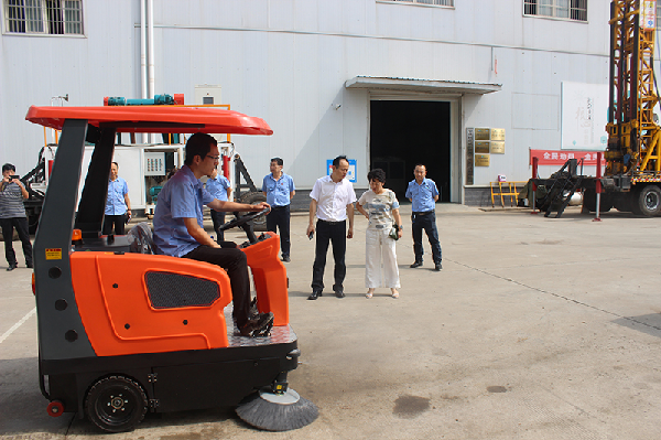 首先,李妍在領導班子的陪同下,參觀了新能源設備生產車間,觀看了多種型號新能源環保清掃機現場演示。隨后,雙方在二樓會議室交流座談。