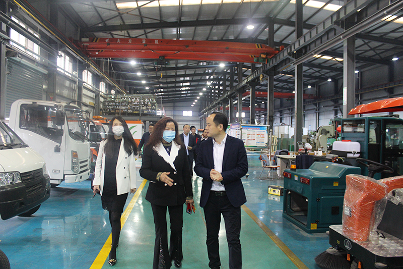 張根鳳董事長一行先行參觀了公司各生產車間,深入現場實地了解新能源環衛系列清掃車系列產品的研發、生產及銷售情況,重點對新能源設備板塊主推產品性能、特點進行適用范圍等情況進行詢問。雙方在紡織工業園管委會領導陪同下參觀了咸陽科技產業園,考察新能源汽車生產車間及相關企業,并調研了咸陽市的營商環境。隨后,在二樓小會議室進行座談。
