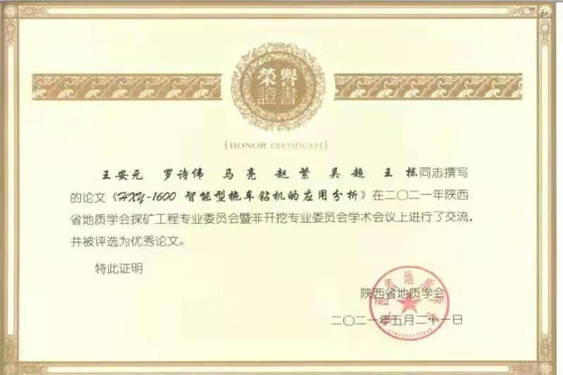 最后經過與會專家及委員評比推薦,會議共表彰了27篇優秀論文及18名中青年探礦科技獎獲獎者,其中核昌公司羅詩偉同志榮獲了陜西省地質學會第十屆中青年探礦科技獎、吳超、王安元等同志撰寫的《NCT-10拖車式泥漿不落地裝置的研制》和《HXY-1600智能型拖車鉆機的應用分析》兩篇論文獲得優秀論文獎。